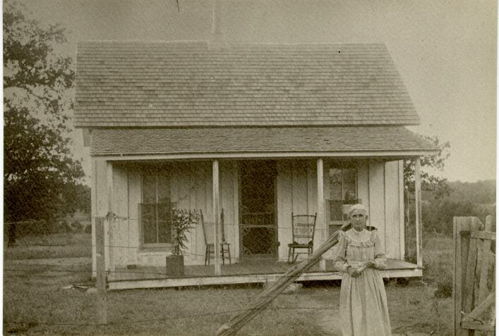 Here's a photo of Ella Ann (Keller) CORBIN in front of her Palo Pinto home sometime in the late 1800s. Ella was my wife's great-great grandmother by virtue of Ella Ann PHILLIPS' earlier marriage to Samuel Vance KELLER in St. Clair County, Missouri (1857 - 1868). Ella married Andrew Frank CORBIN, a widower, in St. Clair County in 1871. They moved to Palo Pinto County with her four children and his two children in 1879. He died in 1889. She died in November 1915 at the age of 83. Note: Anyone with information as to the burial location of Ella CORBIN please contact Charles C. Pineo Submitted by Charles C. Pineo